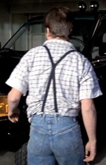 and suspenders, the maroon t-shirt, jeans, all the