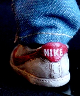 way down to the signature red-swoosh Nikes. As